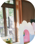 おもちゃは毎回ひとつずつ消毒。清潔で安心して遊べます。